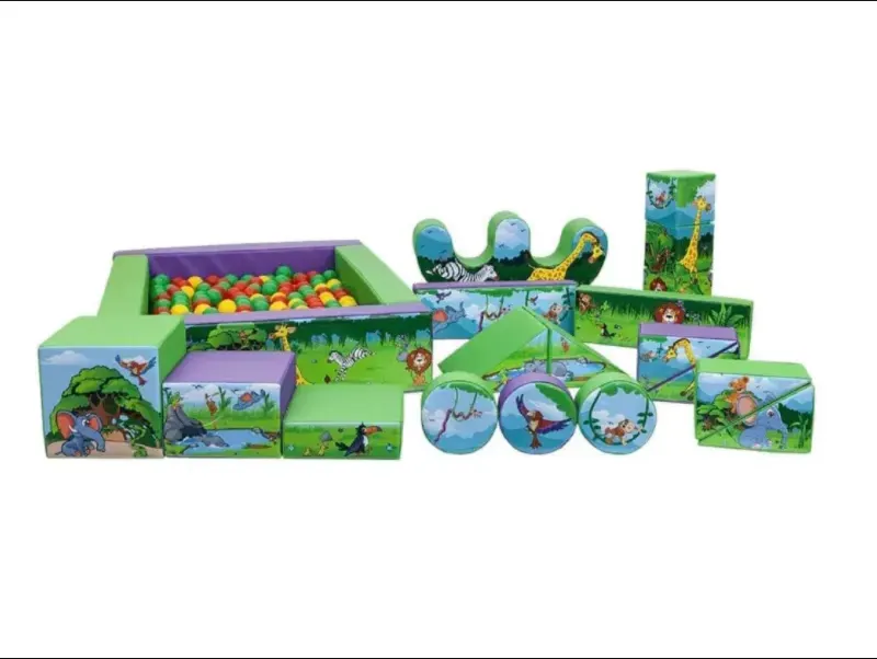 Complementing the castle, the Jungle Soft Play features a delightful array of foam mats, shapes, and interactive elements - all in a vibrant color palette that mirrors the rich hues of a tropical paradise. This soft play set provides a safe and stimulating environment for toddlers and young children to engage in creative and social play.